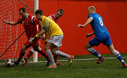 Следующий гол мы увидели вновь в исполнении «контейнера» - после перехвата ими мяча в центре поля, футболисты убежали в быструю контратаку, где паса уже вновь ждал Кондрашов, который вывел команду вперед. В дальнейшем «синие» продолжили натиск на ворота соперника, имея возможность забить еще не раз. И все-таки полузащитник ТрК Павел Крылов перед перерывом в третий раз огорчил «управленцев». Весь первый тайм у вратаря «контейнера» Федора Плотникова, на самом деле, практически не было работы, потому что «хозяйственники» едва могли отодвинуть игру от своих ворот. «Синие» увереннее владели мячом и иногда создавалось впечатление, что на их стороне численное преимущество. Со счетом 3:1 в пользу гостей футболисты ушли на перерыв.